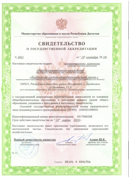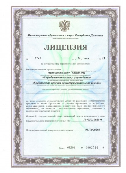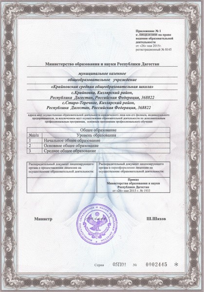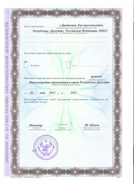 Адрес местонахождения образовательной организации* 368822, Республика Дагестан, Кизлярский район, с. Крайновка, ул. Нагибина, 22а